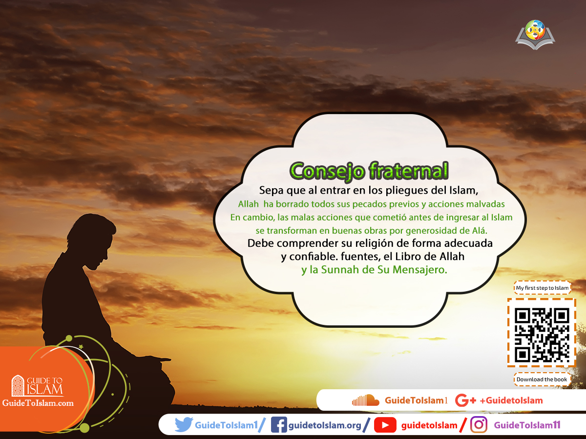 Sepa que al entrar en los pliegues del Islam, Allah ha borrado todos sus pecados previos y acciones malvadas. En cambio, las malas acciones que cometió antes de ingresar al Islam se transforman en buenas obras por generosidad de Alá. Debe comprender su religión de forma adecuada y confiable. fuentes, el Libro de Allah y la Sunnah de Su Mensajero.